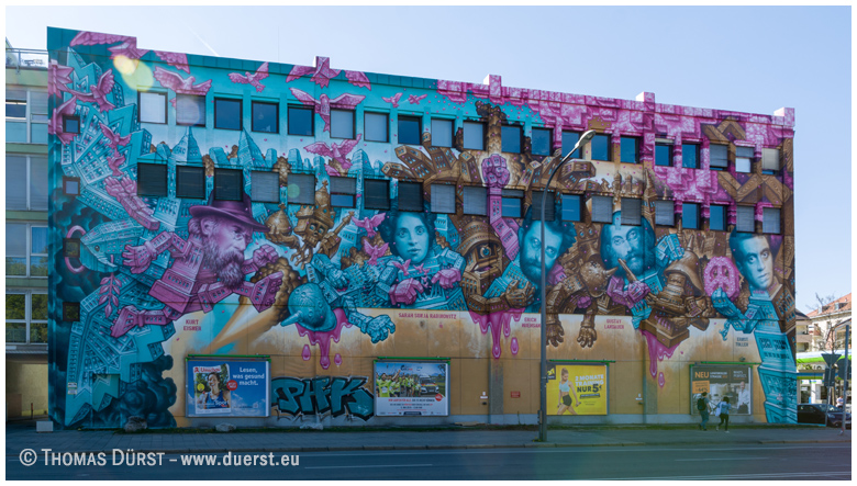 ![]() Urheber: Liqen (geb. in Spanien, lebt in México), 2018 Titel: ExHuman, oder The Cabinet of Curiosities Ort: München, Dachauer Straße 100 Zum Werk: Es soll die Herausforderungen einer modernen Gesellschaft widerspiegeln und Betrachter auf Kuriositäten und Mythen des realen Lebens hinweisen. |